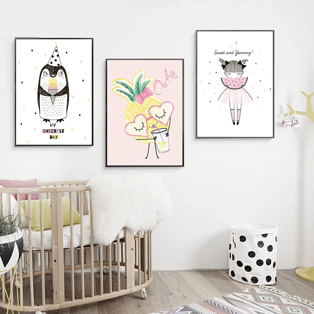 Cartoon Girl Pineapple Wall Art Canvas Funny Posters and ...